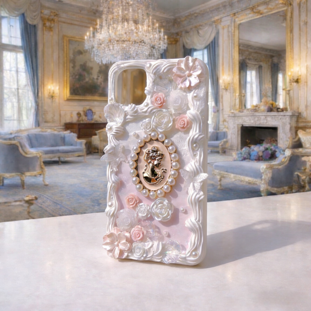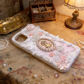 アンティーク薔薇のスマホケース|一点物 立体装飾 クラシカル ロココ ハンドメイド 大人可愛い ゴシック
