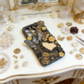 アンティーク薔薇のスマホケース|一点物 立体装飾 クラシカル ロココ ハンドメイド 大人可愛い ゴシック