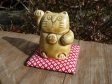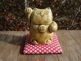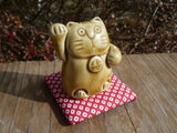 やきものでつくった小さい招き猫です。