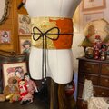 名古屋帯 リメイク サッシュベルト 飾り帯 和洋折衷 L〜LL対応 黄金の祝祭 × 陽だまりのオレンジ ROB-200