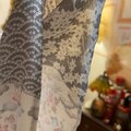 透け感が美しい夏着物を、贅沢な2way仕様にリメイクしました。雲取りの中に四季の花々が描かれた一着です。