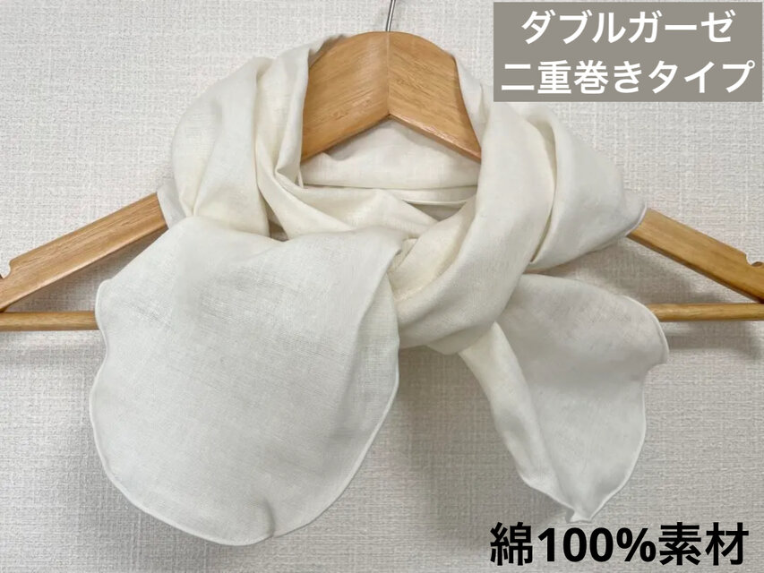 二重巻き綿100%ダブルガーゼオフホワイトリボンタイプネックウォーマー