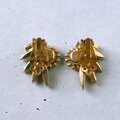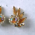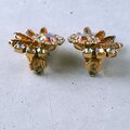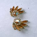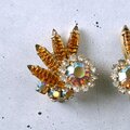 オーロラガラスラインストーンの周りにクリアラインストーンがあしらわれたフラワーの横にトパーズカラーのギブレアートガラスナベットラインストーンとオーロラガラスラインストーンが羽根が広がった様にデザインされたヴィンテージイヤリングです。