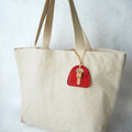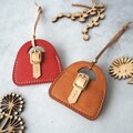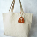 バッグには革ひもで取り付けていただき、根元を真鍮のビーズで閉めてもらうとバッグにかわいく取り付けられます。