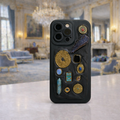 天然石とアンティーク調モチーフを贅沢に組み合わせた、存在感のある立体デザインのスマホケースです。