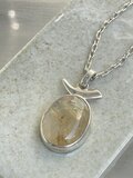 金色、銀色、赤褐色の針状のルチル(酸化チタン)が特徴的な魅力的な宝石です。明晰さ、ポジティブなエネルギー、精神的成長をもたらすと信じられています。ネガティブなエネルギーを浄化し、人生の転機をサポートすることで知られています。