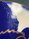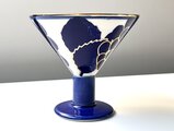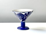 白地に鮮やかなブルーとゴールドでレモンやブドウのような果実が彩色された80年代らしいデザインはとても愛らしく、直径12センチほどの大きなボウルは存在感も抜群です。