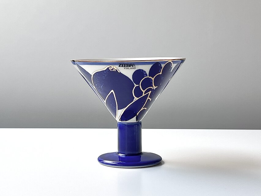 このアイテムは、Zeebra Finlandで製造していたゴブレットのフォルムをもとに、フィンランドのライフスタイルブランドとして現在も世界中にファンを持つ『aarikka』がデコレーションデザインを担当したダブルネームのお品です。