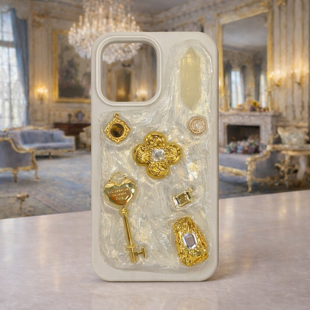 • 装飾:アンティーク調のゴールドメタルパーツ + クリーム調レジン