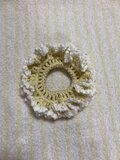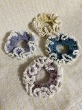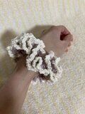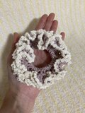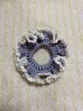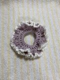フリル部分にカットビーズを編みこんでいるシュシュです。