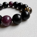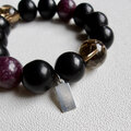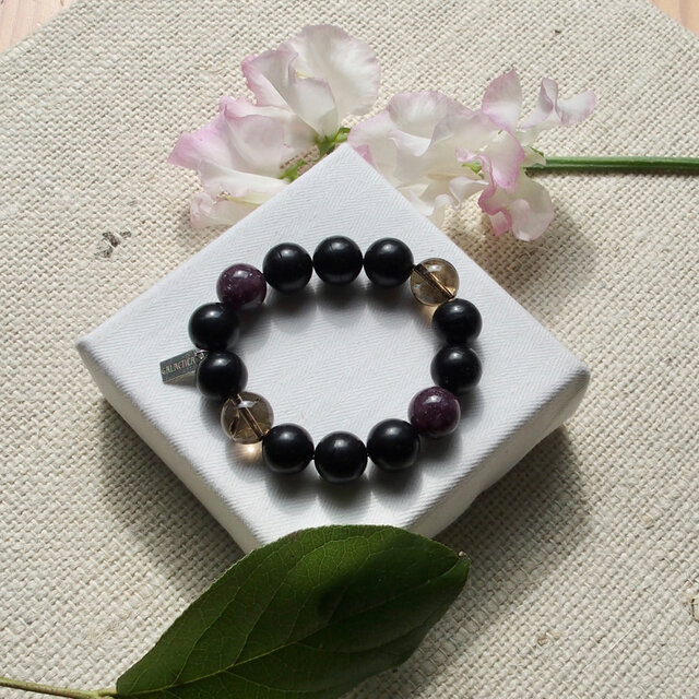 スモーキークォーツとレピドライトがきらめきを添えて。メンズにも。