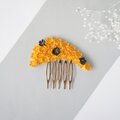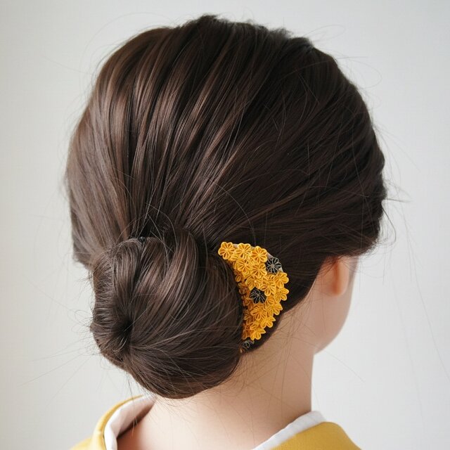 【おだんごやシニヨンに】ヘアコーム 黄と黒の調べ / 着物用髪飾り 普段使い 和装 つまみ細工 黄色 オレンジ 簪