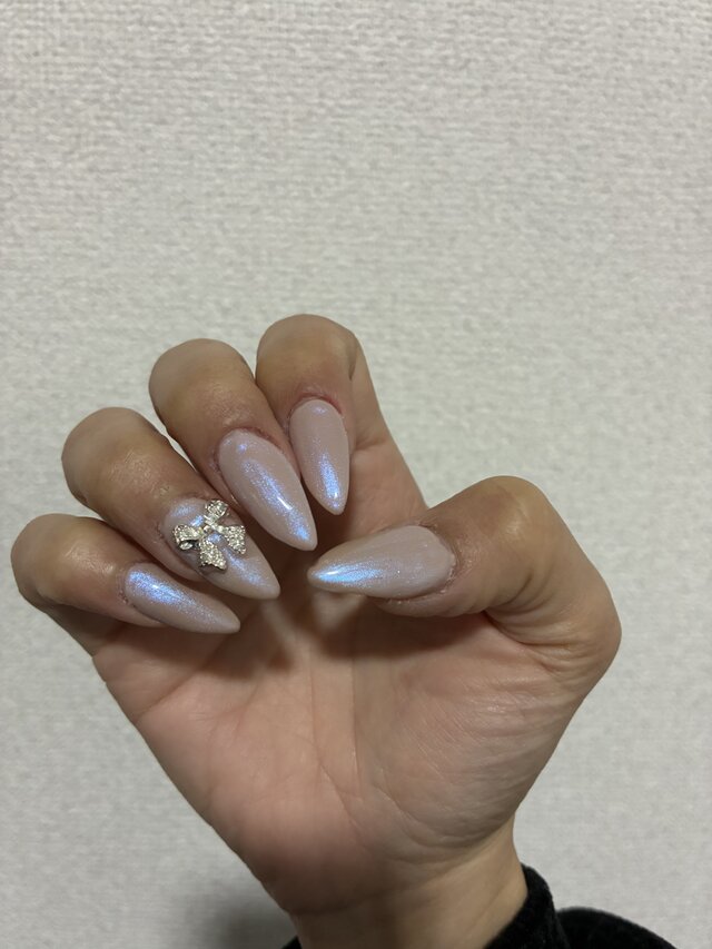 ユニコーンのような繊細なオーロララメを重ねた上品なネイルチップです。