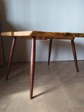 こちらは栗の木の幹から枝元の箇所を使い制作しており、美しい木目の流れをを感じられる神秘的で個性的なカタチのテーブルです。
