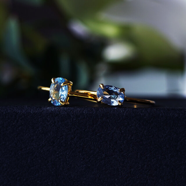 合成ブルースピネルの6mmヴェルメイユリング・各サイズ有・ゴールドシルバー・縦横可 ~貴公子の青