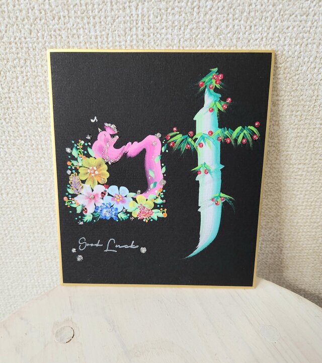縁起の良い絵柄で文字を作り上げる開運文字です。華やかな花文字は持ち主に開運、運気向上、エネルギーを呼び込むとされています。
