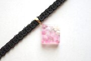 【受注製作】レジンアート スクエアモチーフとタティングレースとベルベットリボンのチョーカー〈水紋・ピンク〉