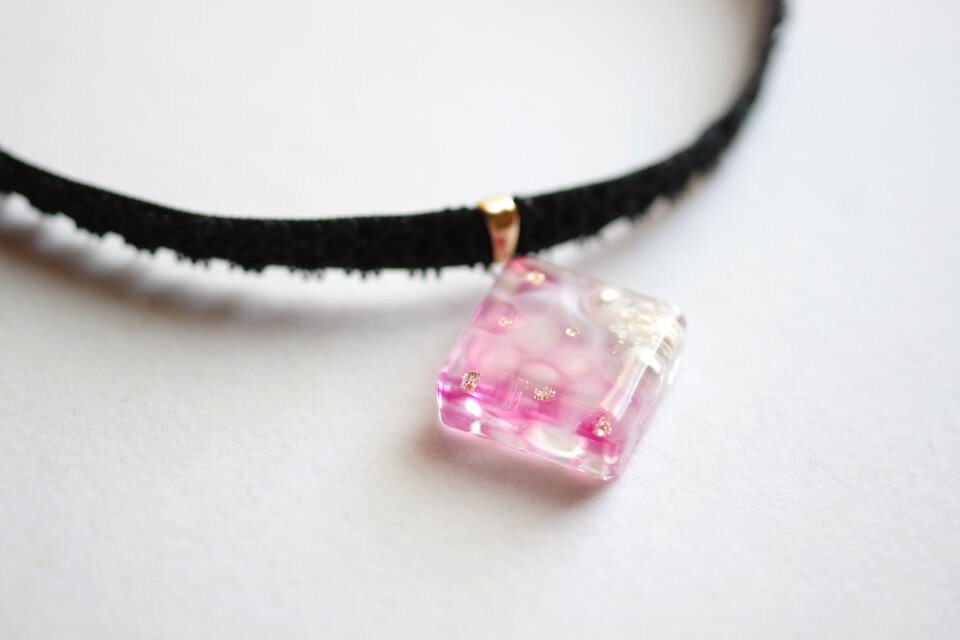 レジンでスクエアモチーフのチョーカーを作りました♪