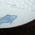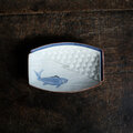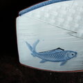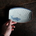 金の目の鯉◆瀬戸焼 時代青磁陽刻金彩刺身皿 長方皿 古道具 古民家 昭和初期