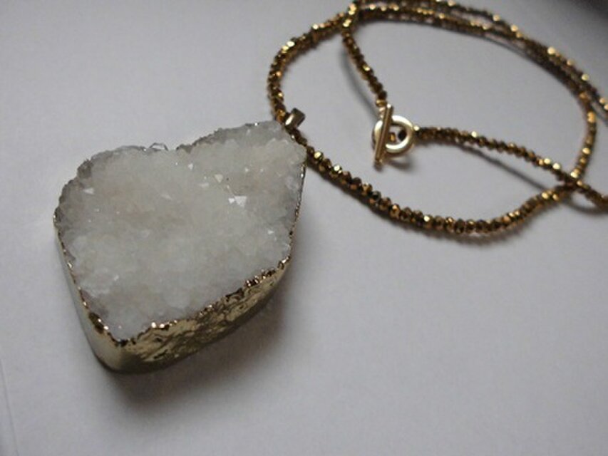 雪の塊の様に見える「水晶の群生」をペンダントにしたネックレスです。