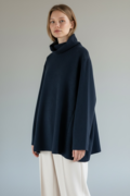 ハイネックの首元は締めつけ感の少ない、ゆとりあるデザインで、くしゅっと自然な立ち上がりがやさしい印象を与えてくれます。