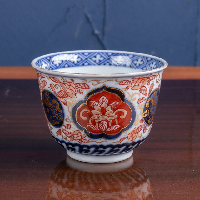 古伊万里 金襴手草花文 猪口 明治時代 E2267B-1