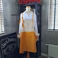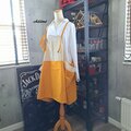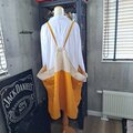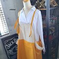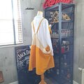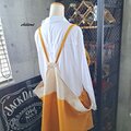 リネン×マスタードの切替デザインエプロンが出来上がりました。