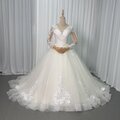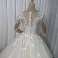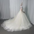 フランス風 ウェディングドレス アイボリー 流れる透け花レース シースルー袖 プリンセスライン くるみボタン 結婚式