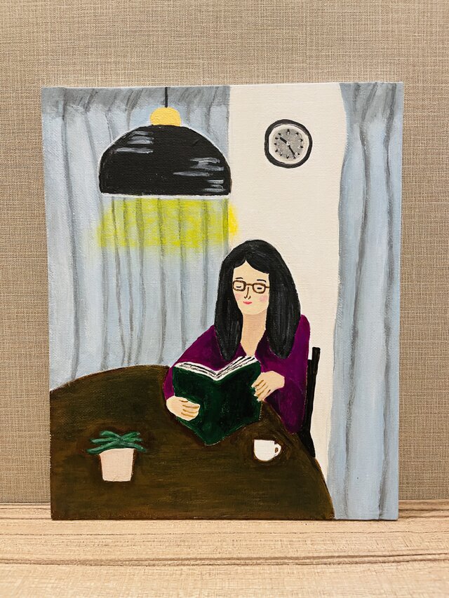 何気ない昼下がりですが、色彩のセンスが素晴らしくてとても癒される作品です。 メガネの女性の表情が素敵です。 ありがとうございました。