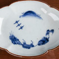 古伊万里 染付山水文 木瓜形皿 江戸中期 E1701B