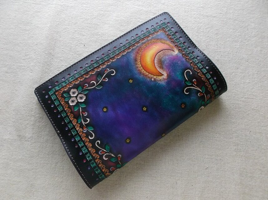 刻印配列や染色はさることながら、使い込むほどに、経年変化で艶が増しより使いやすくなることがほかの素材のブックカバーにはない最大の特徴だと思います。