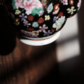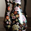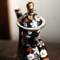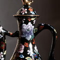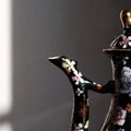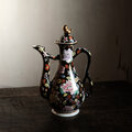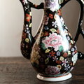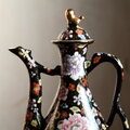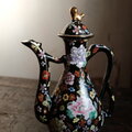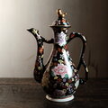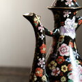 黒にカラフルな花尽くし◆中国産 色絵金彩ティーポット チャイナレトロ シノワズリ 茶器 ブラック