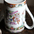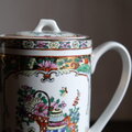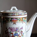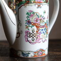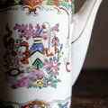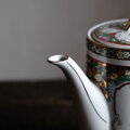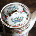 花籠と蝶々と花瓶◆中国廣彩 色絵金彩ティーポット チャイナレトロ シノワズリ 茶器 インテリア