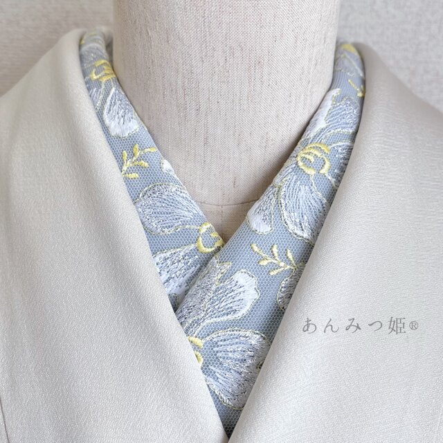 洗える刺繍半衿 ラメ花