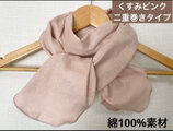 二重巻き綿100%ダブルガーゼくすみピンクリボンタイプネックウォーマー