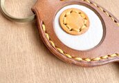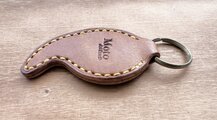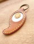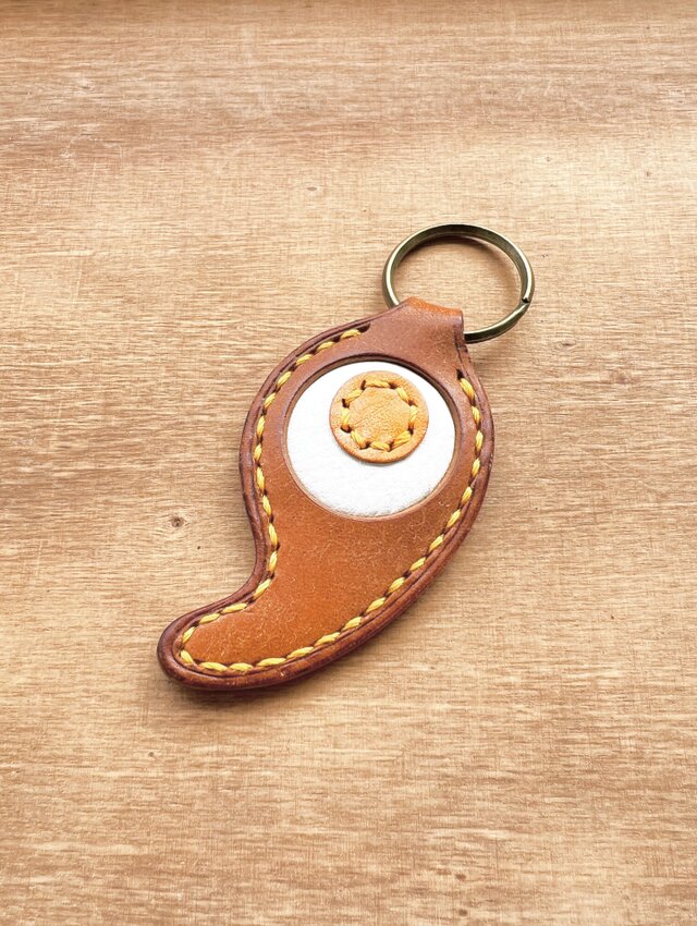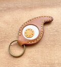 沖縄県のマークと勾玉をミックスした本革キーホルダーです。