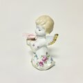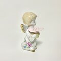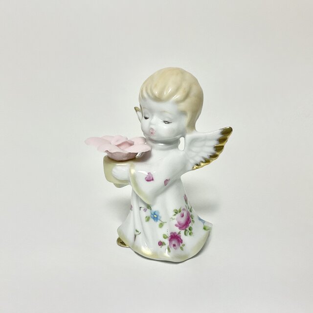 レトロな雰囲気があるキュートなベビーの天使のドレスに、ピンクのバラと、ブルーの忘れな草を散らして描きました。