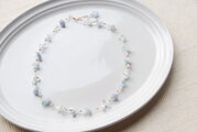 ネモフィラと春の色を思わせるさまざまな石やビーズを散りばめています