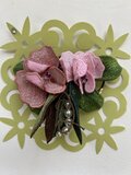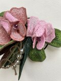 ミシン刺繍で制作した「立体フラワーチャーム」さや🫛付きスイトピーです。