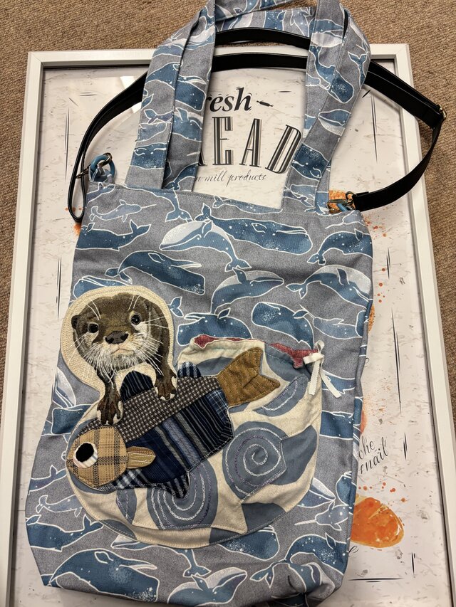 かわうそが魚を捕まえている様子を表現したバックです。