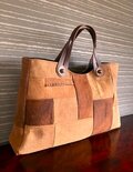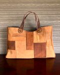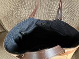 こちらの手提げは、皮の手がポイントになり横長のマチ付きの手提げになっています。