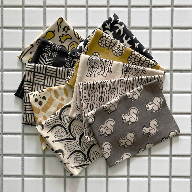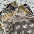 インド ブロックプリント生地 ミニカットクロス10枚 ブラック&イエロー vol.34ファブリック IF0465