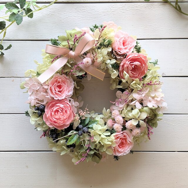 ずっと咲き続けるプリザーブドフラワーのリースです。