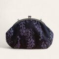 刺繍された生地を使用して製作した、がま口の大きめポーチです。
