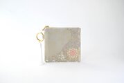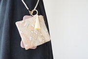 西陣織・服部織物製 蜀江文に雲取り・花唐草模様のシルク帯で製作したバッグチャーム型スクエアポーチです。