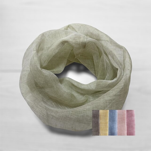 上質なリネンガーゼ100%生地を使用した、一重スヌードです。