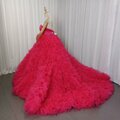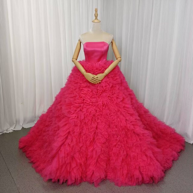 人気上昇!カラードレス ローズピンク ベアトップ ボリュームドレス チュールスカート ファスナー 花嫁