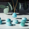 サージカルステンレス ネックレス セミロング ゴールド 天然石 ジュエリー アクセサリー カラーストーン ストーン ネックレス 大粒 ハンドメイド プレゼント ギフト シンプル 高品質 モード デザイン リパッティ Lipatti カリブ海 海 水面 青 美しい青 優しい青 まどろみ 癒し ペクトライト 包まれるような色 揺らめく色
