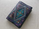 表装には、刻印を排列したのちに拭き染めで自家染色を施しています。