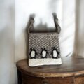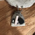 シェットランドウール100%の毛糸でペンギンを編み込んだ巾着です。